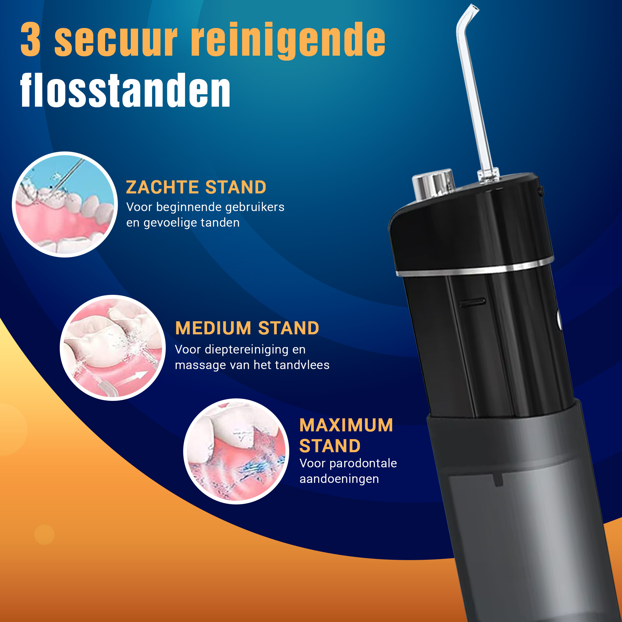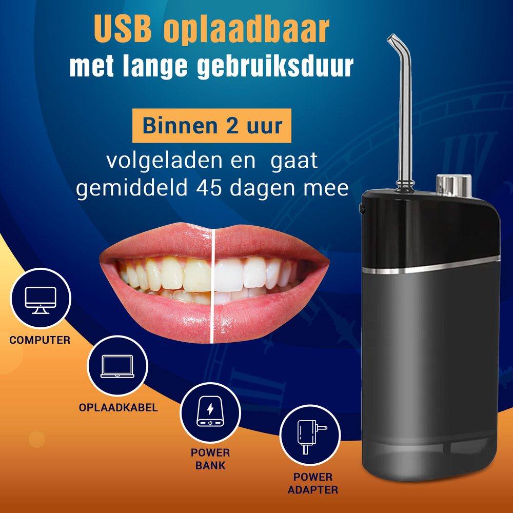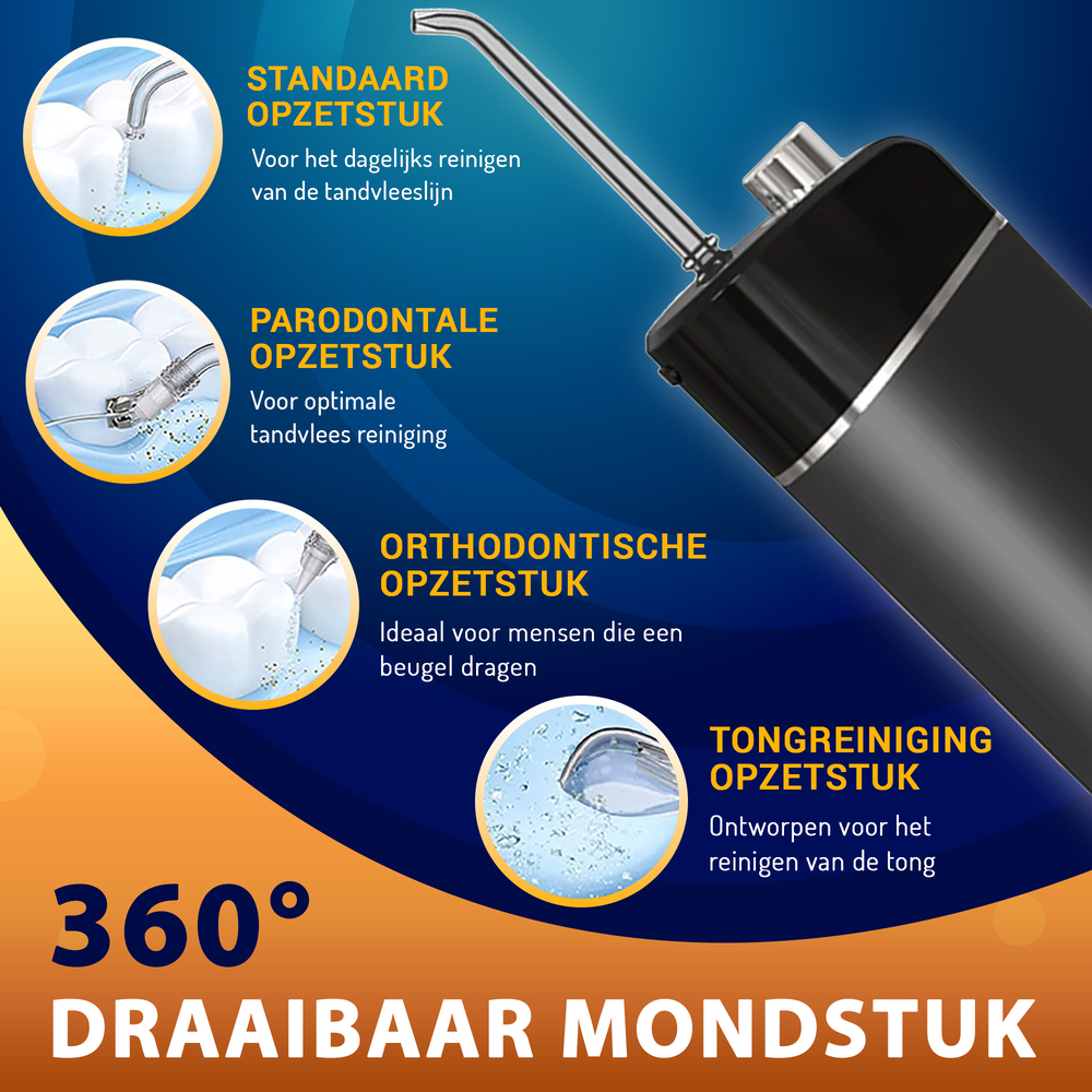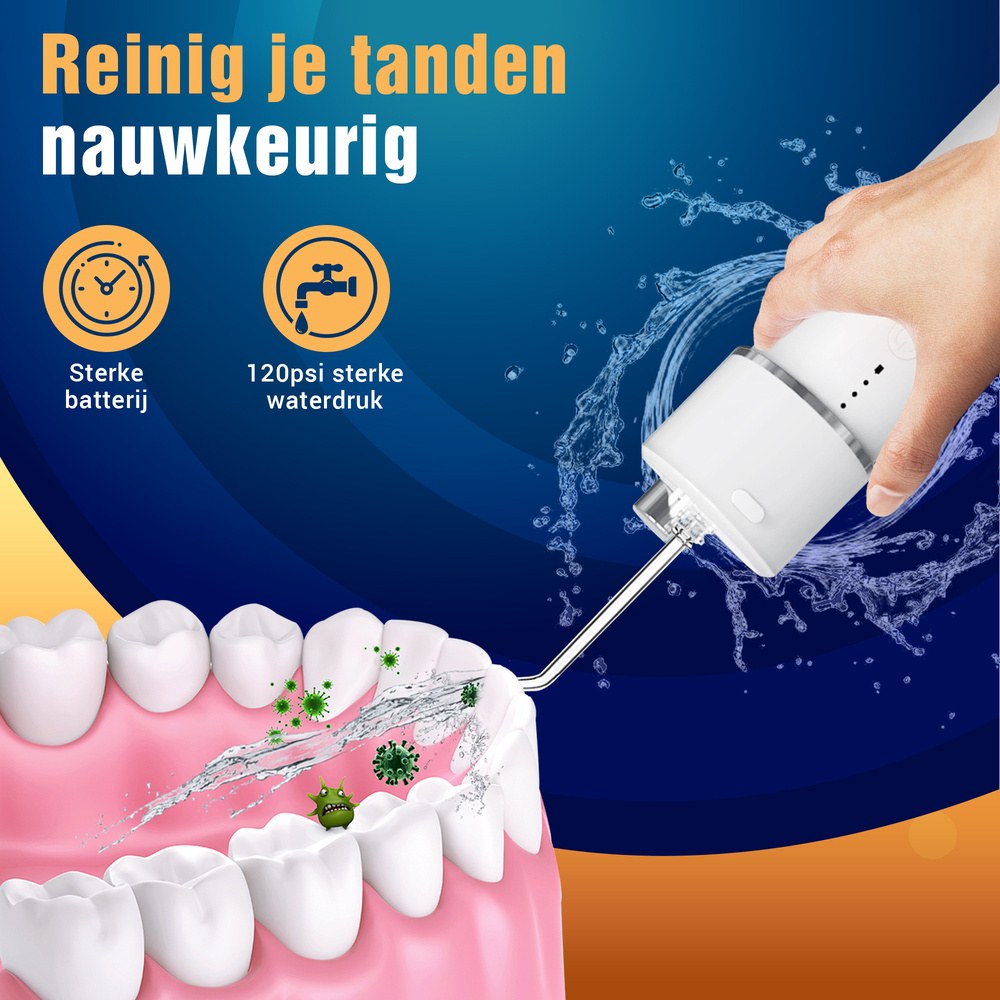 Het gebit schoonhouden tussen of achter de tanden is vaak een uitdaging, zeker als je een beugel hebt. Met deze elektrische waterflosser kun je al die lastige hoekjes & gaatjes goed schoonmaken, met slechts één beurt haal je 99.99% van alle tandplak weg!