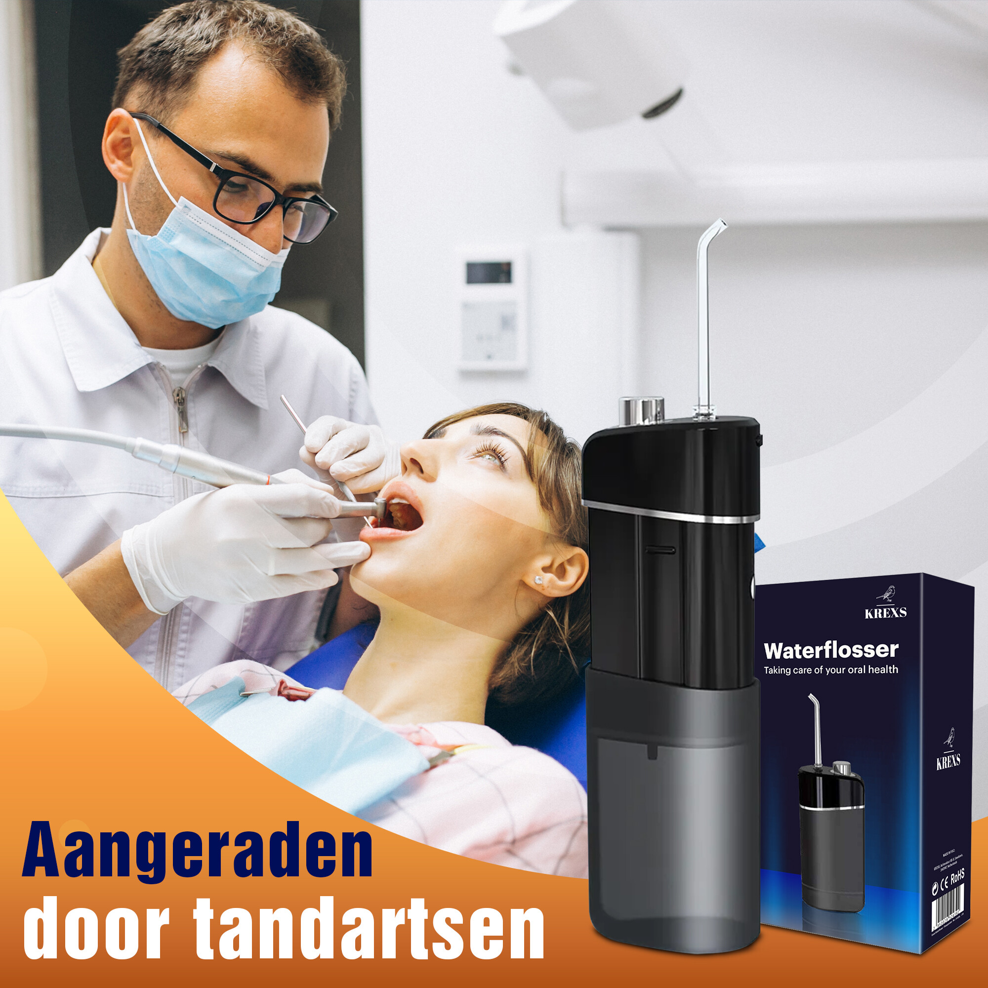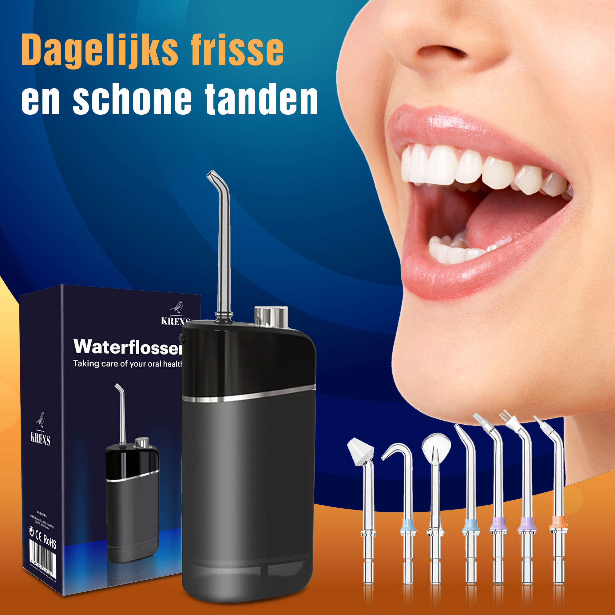 De Krexs Waterflosser houdt je gebit sterk en gezond, flosdraad en tandenstokers zijn vanaf nu verleden tijd. De elektrische waterflosser is zo krachtig, dat tandplak en voedselresten voor 99,99% wordt verwijderd. Dit kan niet ontbreken in je dagelijkse routine, kies voor een gezond gebit en ervaar zelf het verschil.