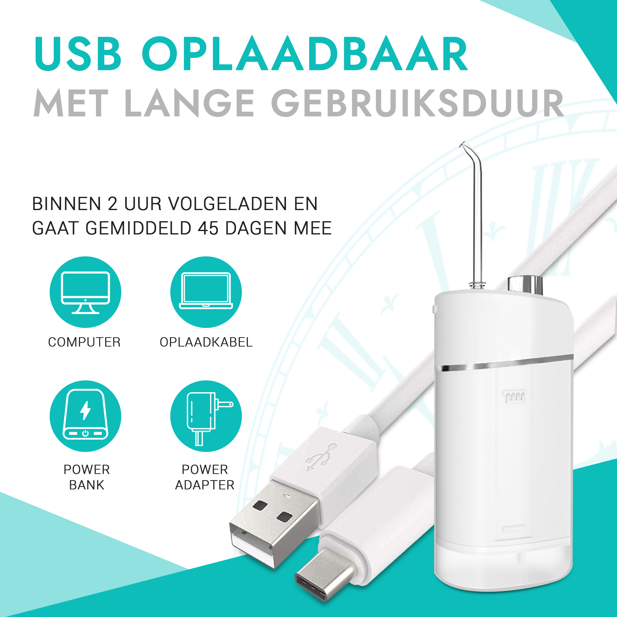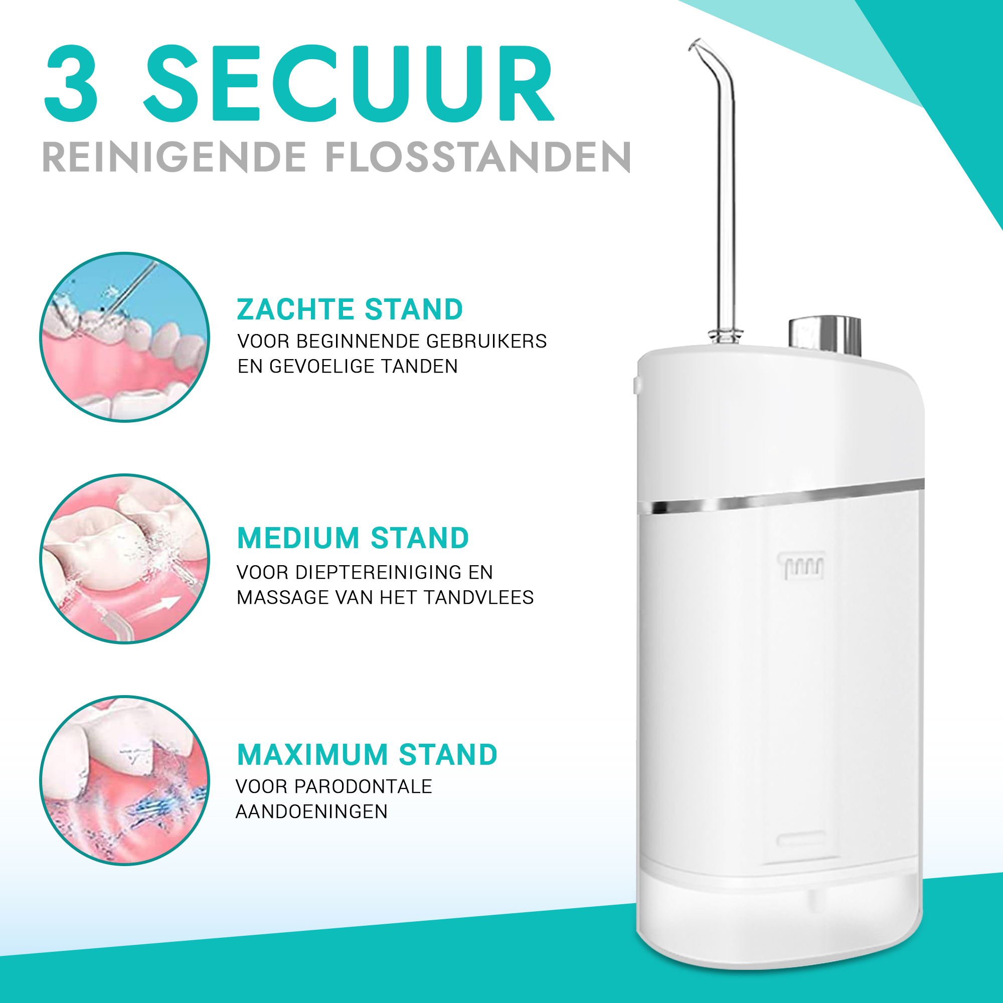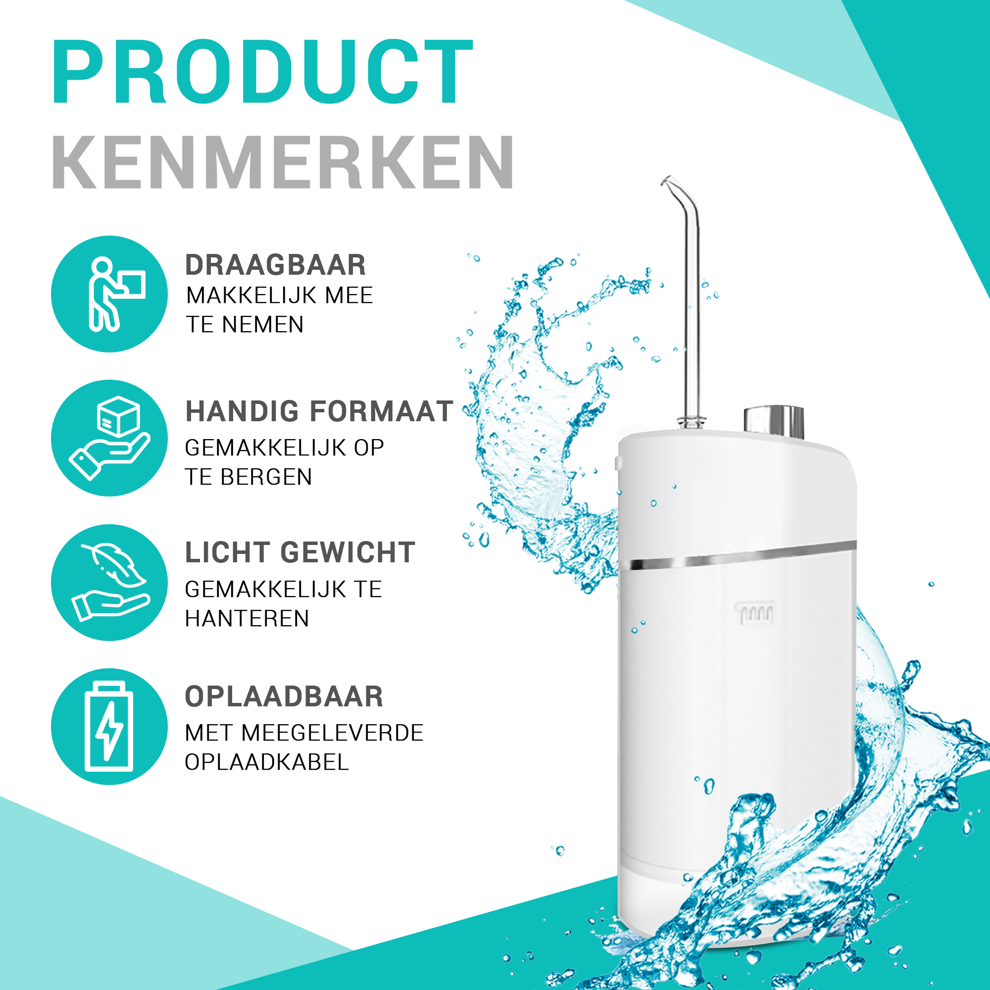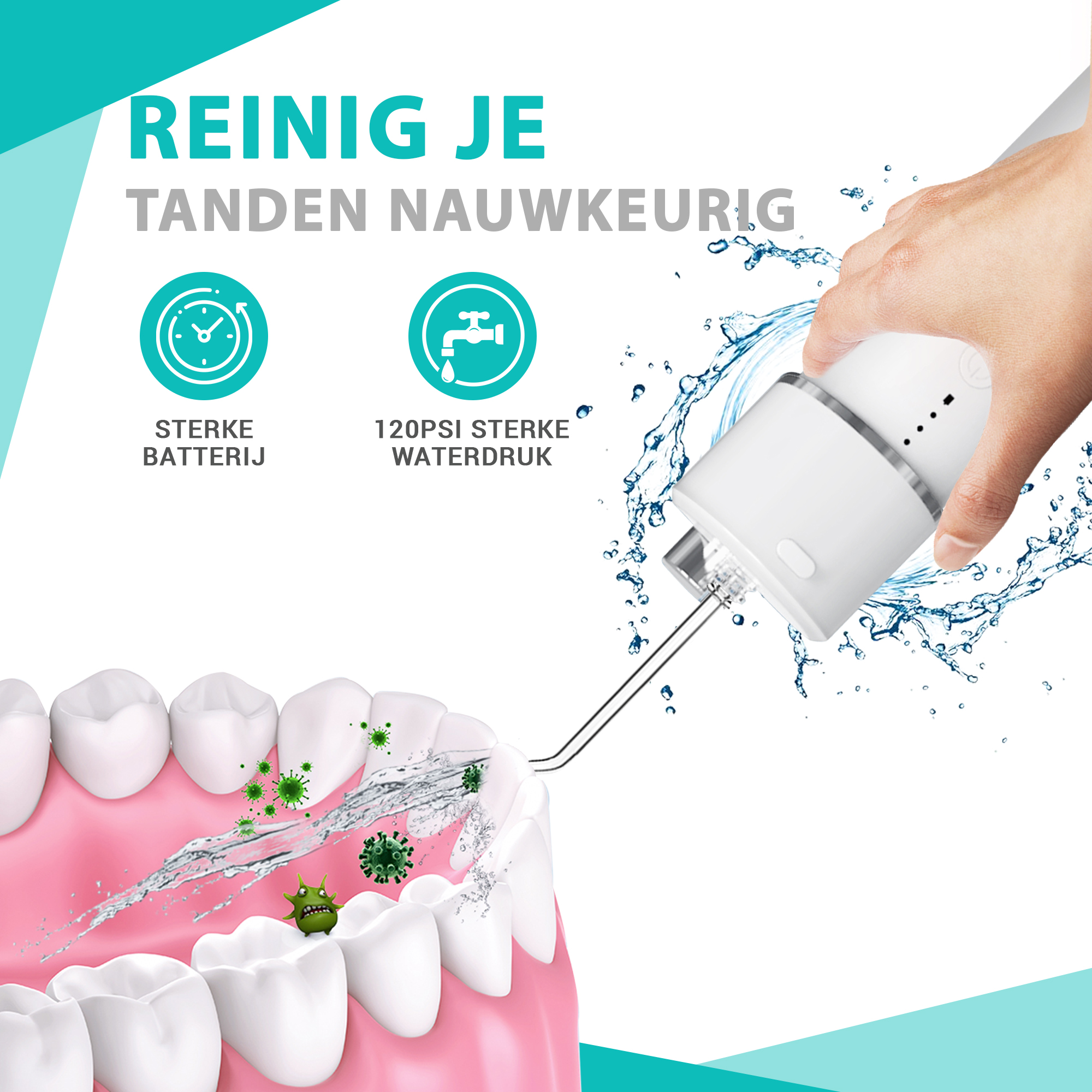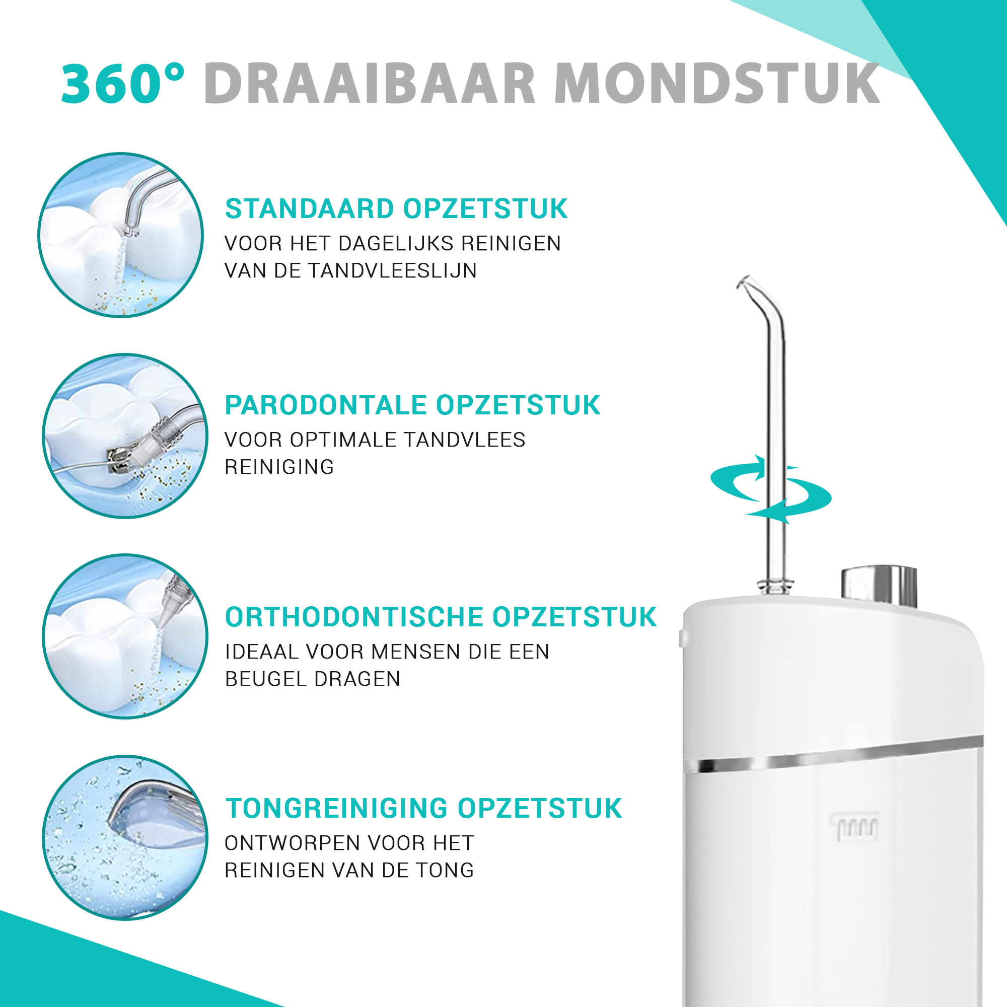 Het gebit schoonhouden tussen of achter de tanden is vaak een uitdaging, zeker als je een beugel hebt. Met deze elektrische waterflosser kun je al die lastige hoekjes & gaatjes goed schoonmaken. Met één beurt haal je 99.99% van alle tandplak weg!