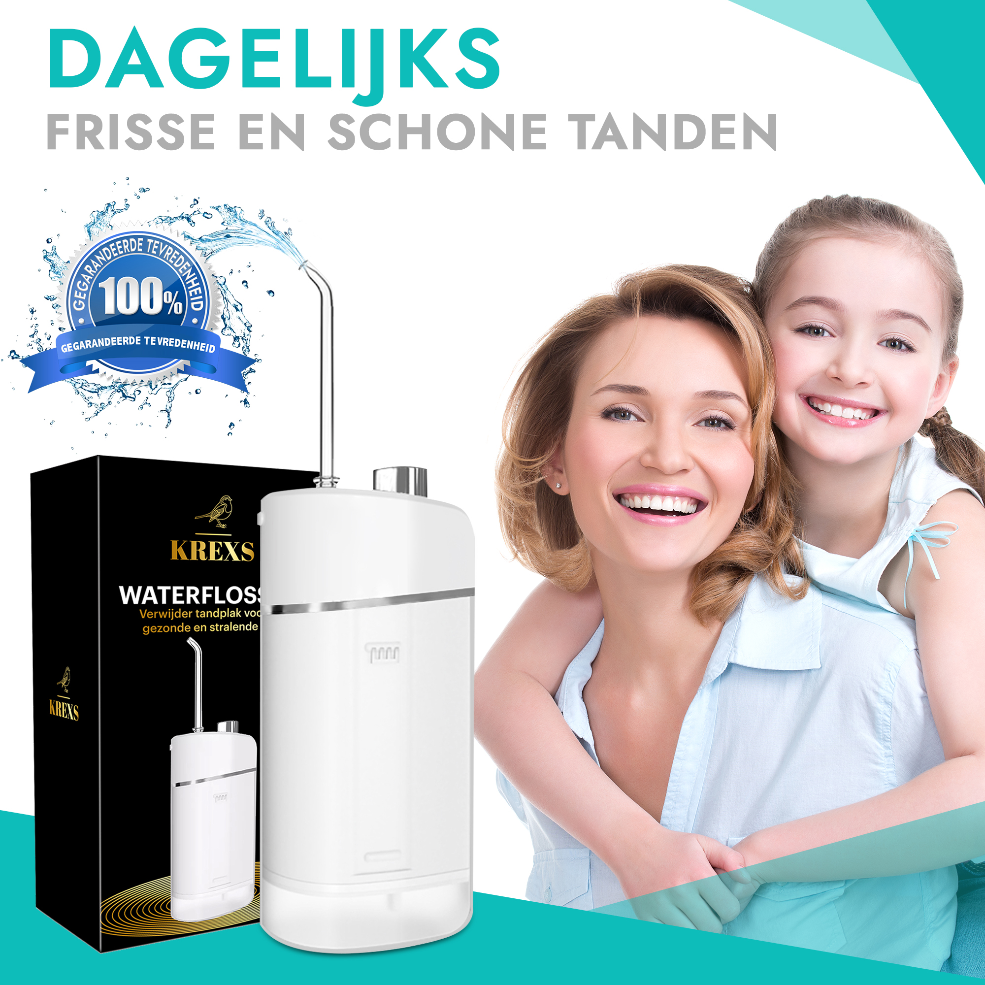 De Krexs elektrische waterflosser houdt je gebit sterk en gezond. Flosdraad en tandenstokers zijn vanaf nu verleden tijd, de elektrische waterflosser is echter zo krachtig, dat tandplak en voedselresten voor 99,9% wordt verwijderd. Dit kan niet ontbreken in je dagelijkse routine, kies voor een gezond gebit en ervaar zelf het verschil!